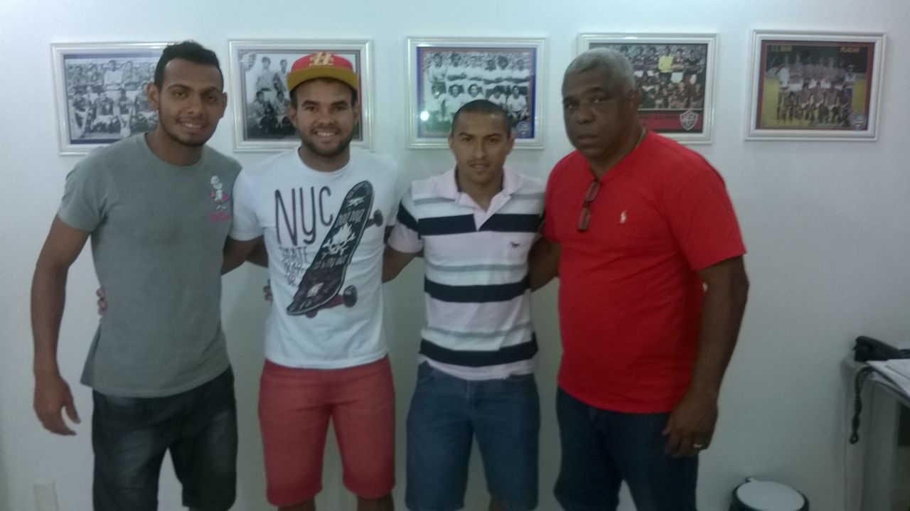 Hoje 06/01/2015 pela manhã compareceram na sede do SINDAP-BA para pagamento de Direito de Arena do Campeonato Brasileiro 2014 pelo E.C.VITÓRIA -SÉRIE A ,os seguintes atletas :MANSUR, JOSÉ WELISON E NINO PARAÍBA ao lado do Diretor jurídico Ronaldo Passos.