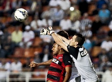 O Vitória não teve nem tempo de respirar. Aos três minutos, Luís Aguiar tocou errado e Ruiz arrancou até a intermediário. O colombiano driblou Luiz Gustavo, mas foi derrubado. Bocanegra apareceu para a cobrança e com muita categoria mandou a bola na gaveta, sem chances de defesa para Júnior Fernández.