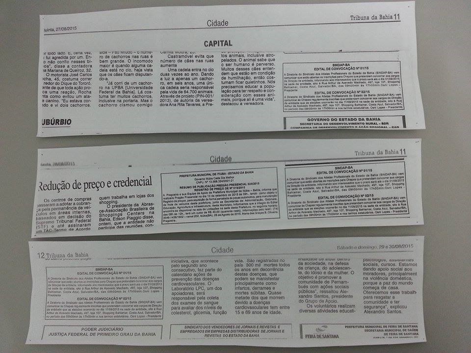 Esses editais foram publicados em jornal de grande circulação nos dias 27, 28 e 29 de agosto de 2015.