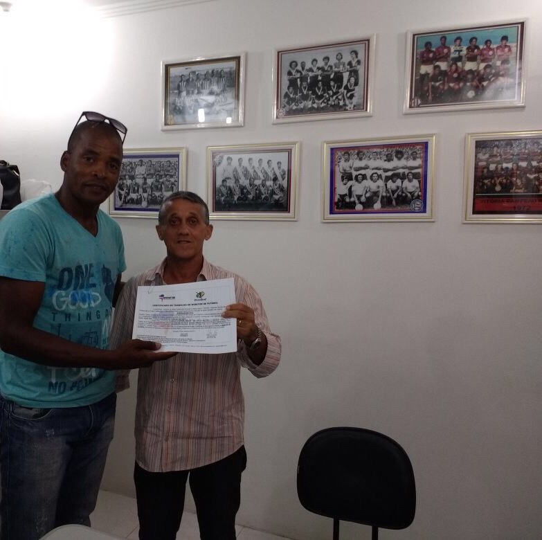 Ex atleta Everaldo Batista, recebe Certificado de Monitor de Futebol através do SINDAP-BA